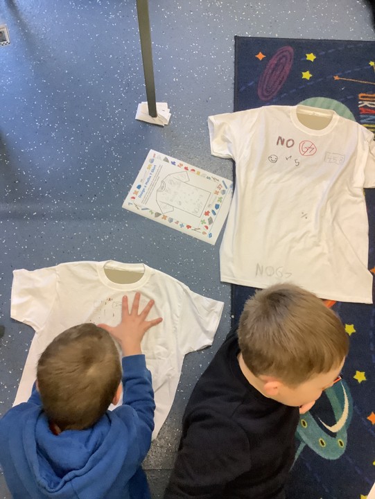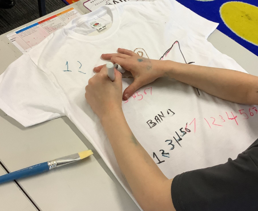By Friday afternoon, the school had been transformed into a gallery. Rows of T‑shirts hung proudly on display: some funny, some clever, some detailed enough to belong in an art exhibition.