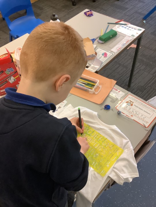 The corridors became a hive of creativity. Tables were covered in fabric pens, stencils, sketchbooks, and the occasional emergency glitter spill. Teachers wandered around offering encouragement — and trying not to get marker ink on their jumpers. Mr Fenner visited each classroom, cape still flowing behind him, praising every idea with genuine excitement.