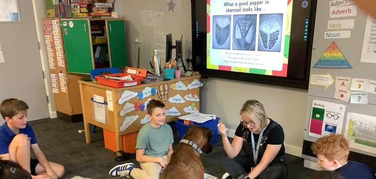 Here are our year 6 students reading the latest RSPCA magazine to one of our school dogs. Lots of engagement and excitement.