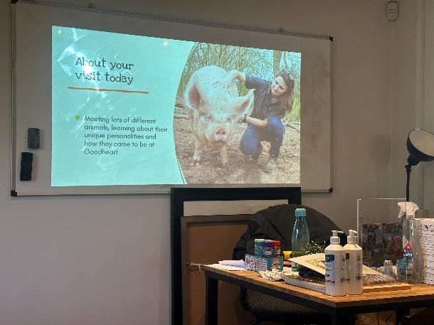Alisha and Dave offered a warm welcome to the sanctuary, they spoke to the students about how they began working for the sanctuary and caring for the needs of the animals. Alisha talked through her career in animal care as a young girl volunteering at a local farm close to where she lived, she seen firsthand how much animals need humans to help and care for them so from this began her college journey and completed it finding her role within the sanctuary and has been there since it opened in 2017.