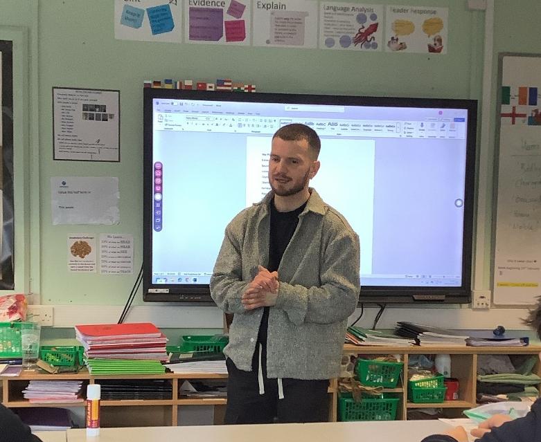 As part of our Careers lessons year 9 had a visit from Matt Windle. Matt is a professional Boxer and Poet. When Matt was in year 11, he was sent to a Pru school in Birmingham. He told us this was because he was always getting into trouble at school by fighting. He explained to the class how he took his anger and started boxing instead and this resulted in him turning professional and he has currently had 79 fights.