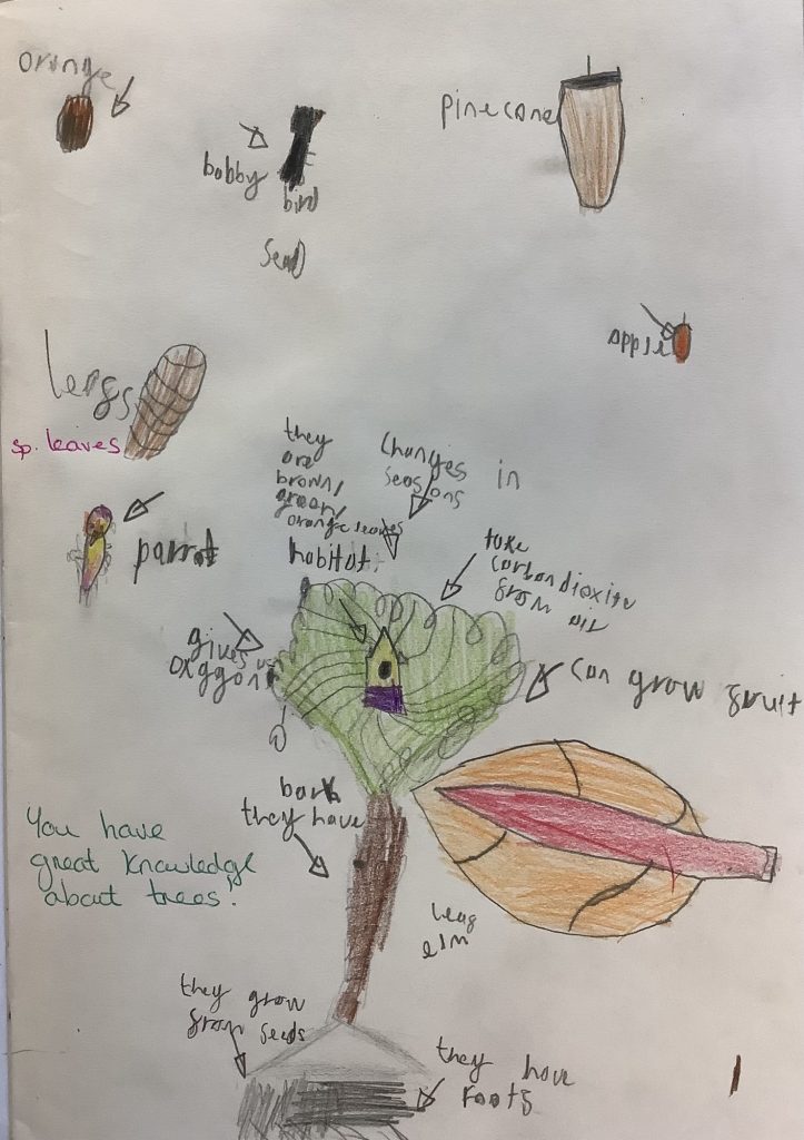 In spring 1, P1 were asked the question: What do we know about trees? This was then explored through sketch, before practicing the skill of printmaking.