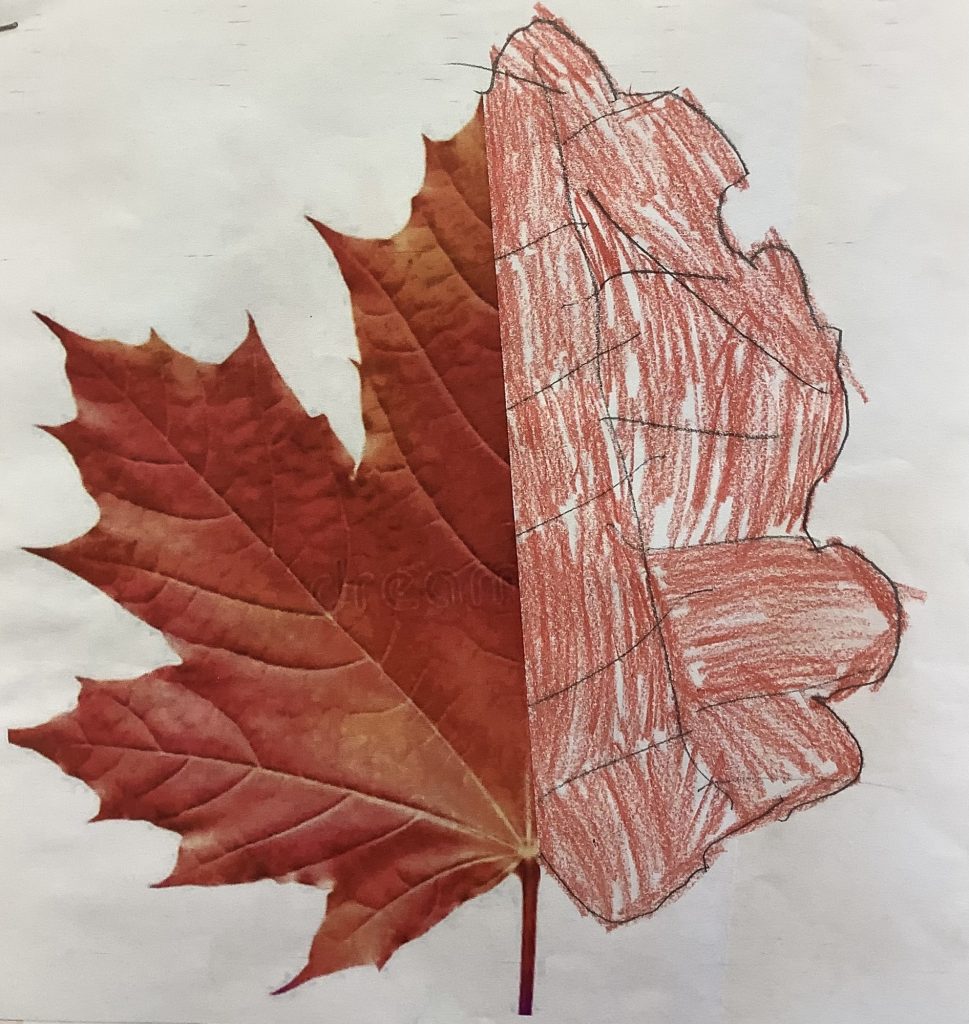 Students started by brainstorming everything they knew about trees and recording this in their sketch books. They then used their observational skills and symmetry to complete a leaf drawing.