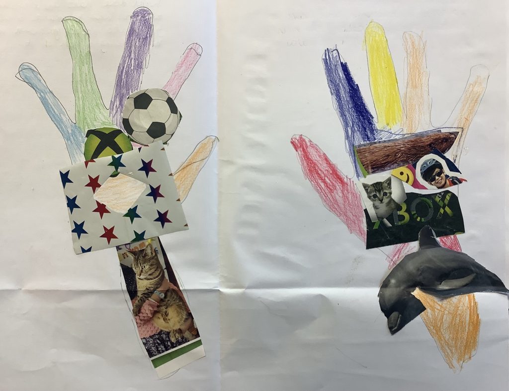 At the end of the term, the students brought all of their skills together to create a collage bursting with interesting shapes cut from different colours and textures.