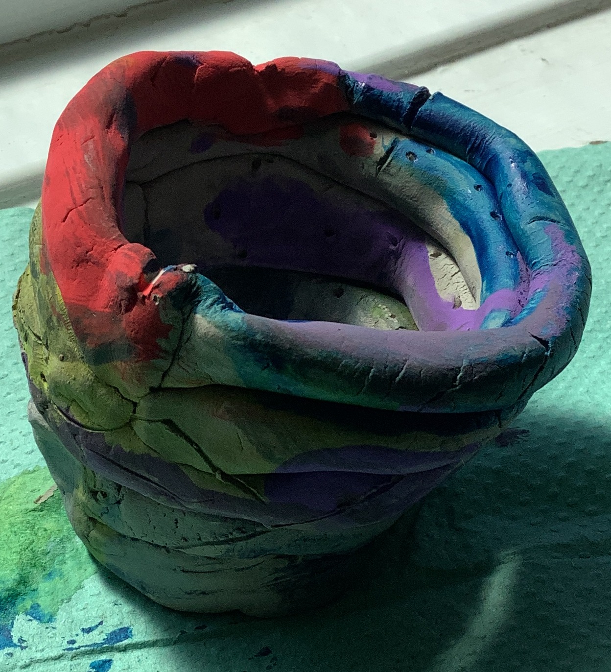 They then design their sculpture before making it using clay and tools to shape, engrave, and paint their pots!