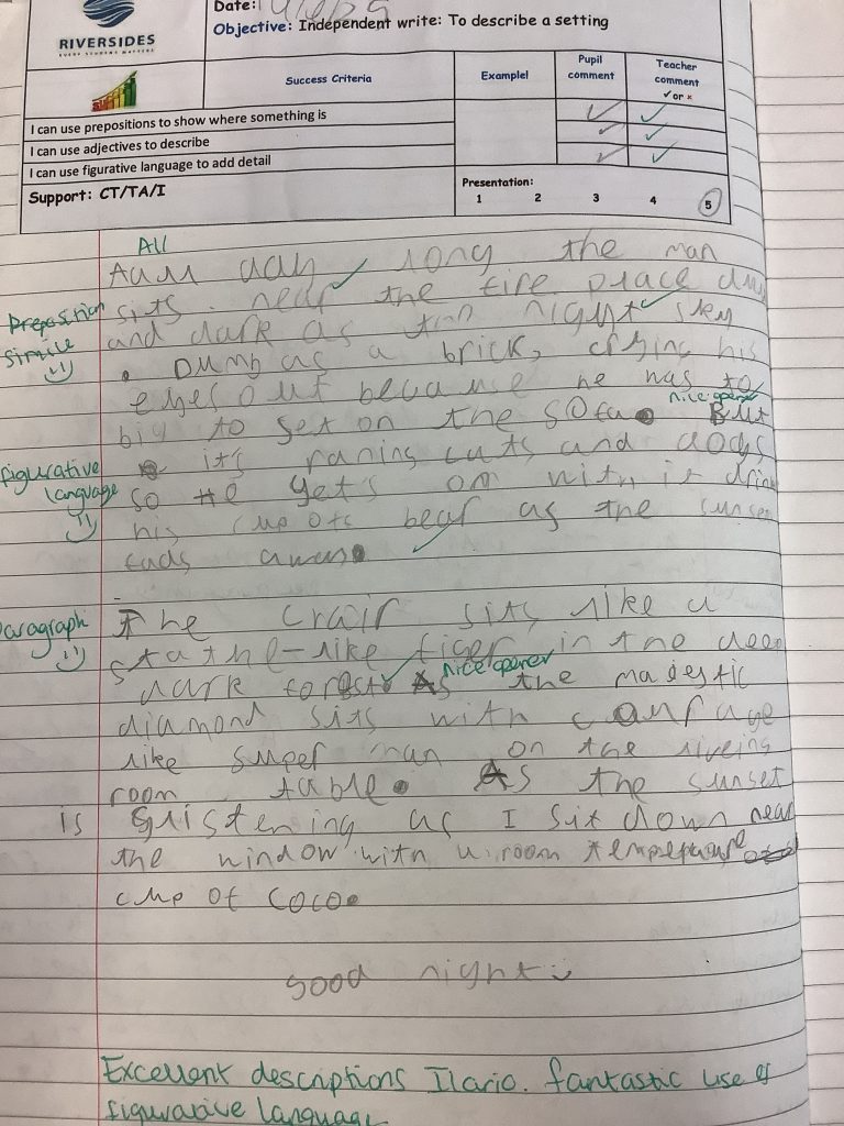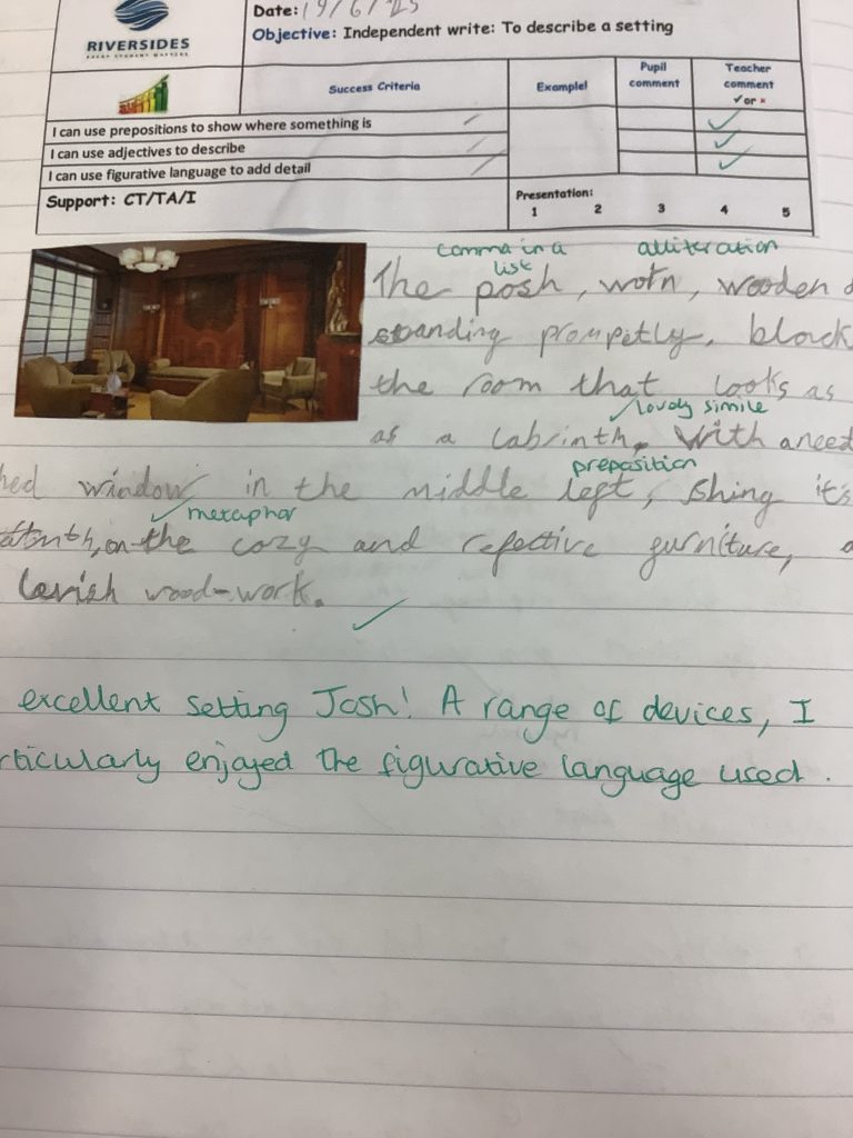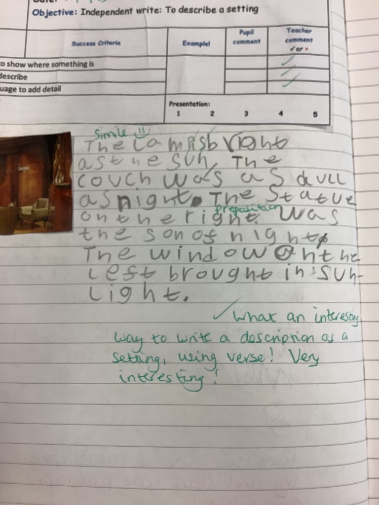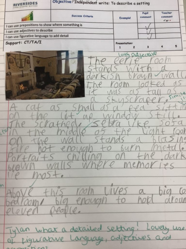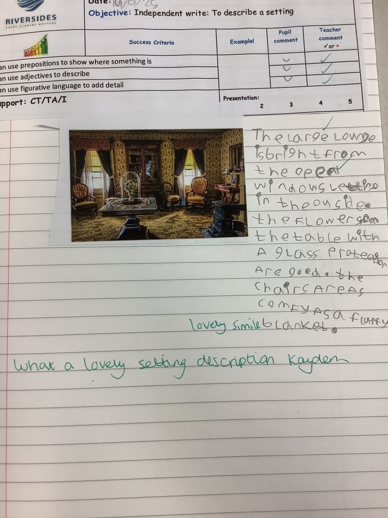 Year 6 have been writing vivid setting descriptions based on 1930s homes, linking their English work to their history topic. They impressed us with their use of prepositions, powerful adjectives, and figurative language to bring the past to life