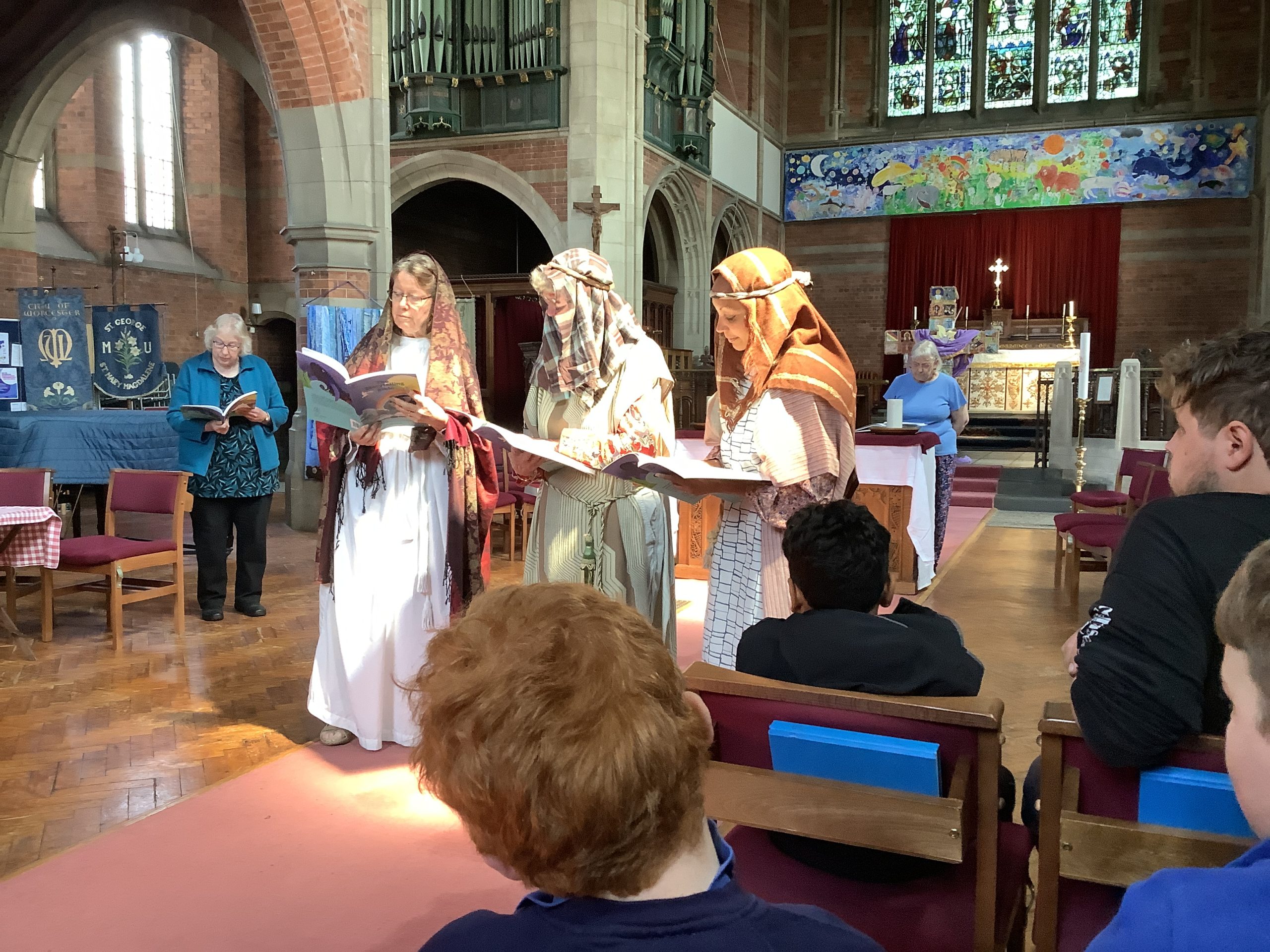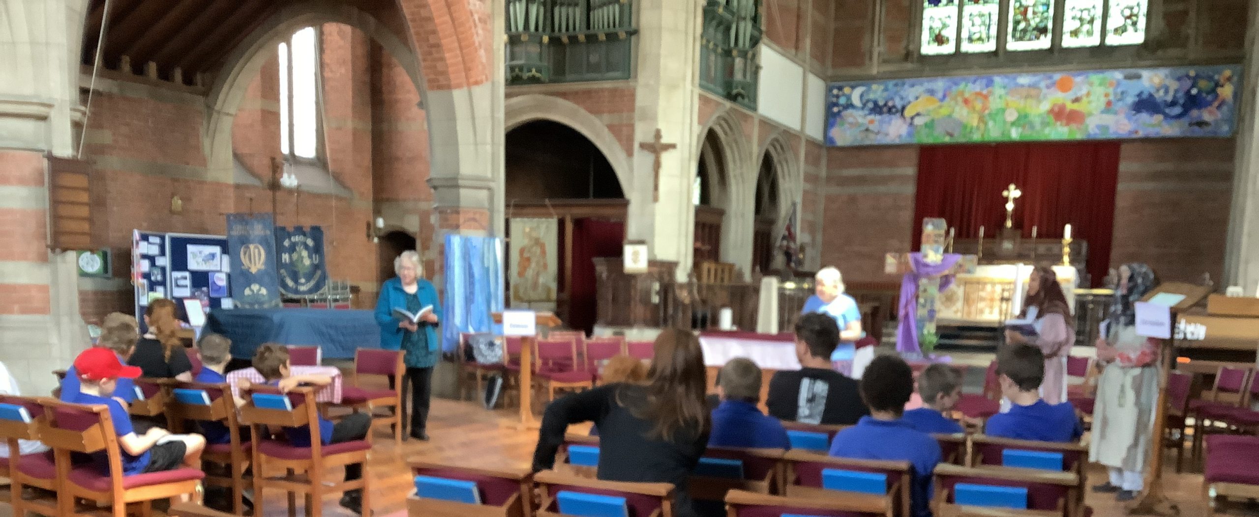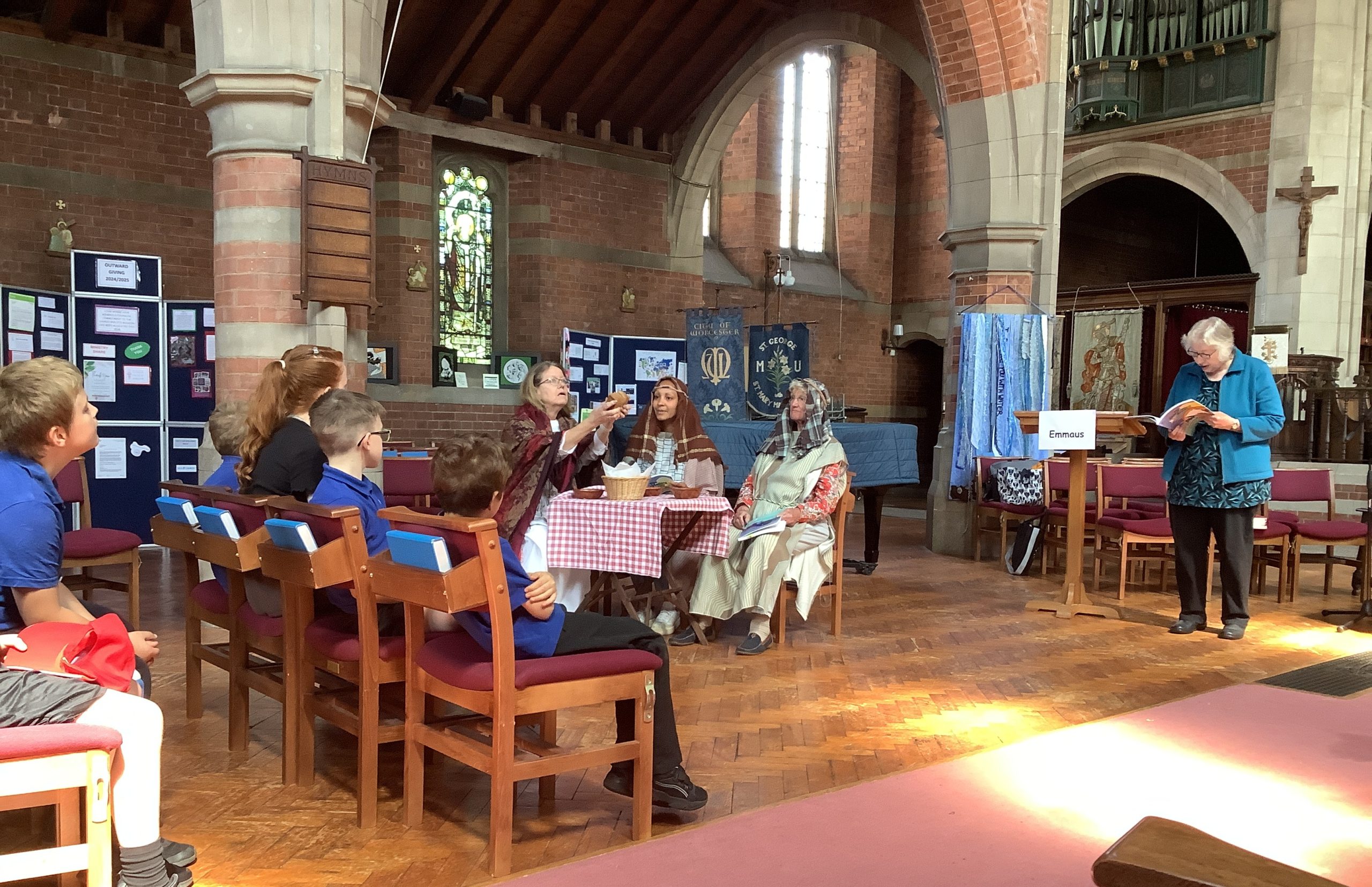Primary pupils visited St George’s C of E Church to take part in an ‘Open The Book’ retelling of the ‘Road to Emmaus’, where Jesus walked and chatted with some of his followers following his resurrection.