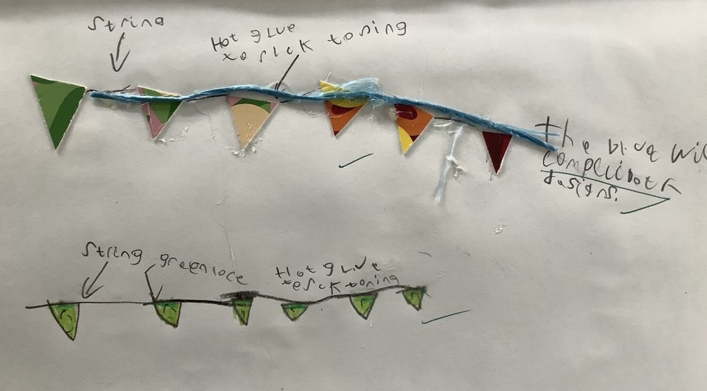 Students then moved on to look at work by textile artists such as El Anatsui and Guerra de la Paz before designing their own bunting to make from recycled materials.