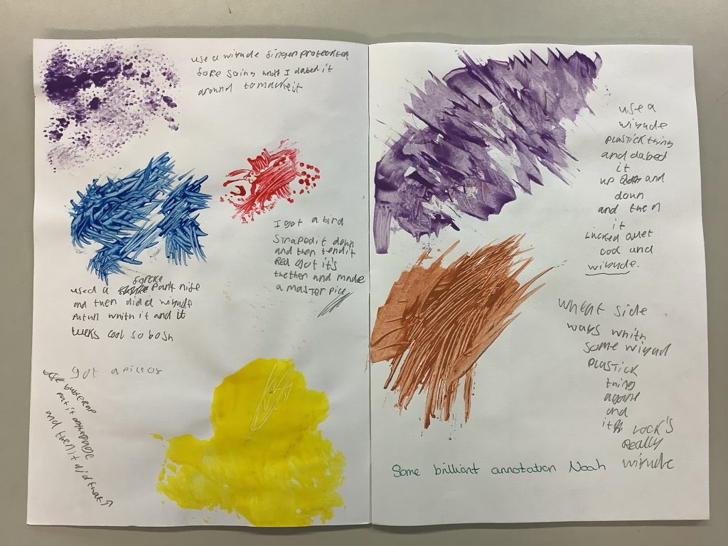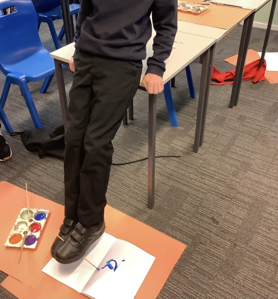 They begin by experimenting to see what types of marks they can make by using different tools and mediums, before exploring the work of disabled artist Sarah Biffin. Biffin was born without any arms and went on to become a successful miniature artist. The students experiment making marks with paint without being able to use their hands.