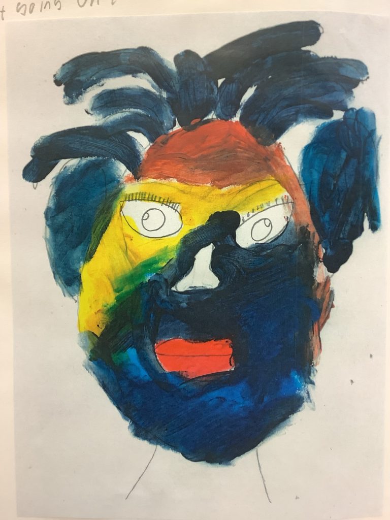 Students then explore the work of African finger painter Jack Kabangu, experimenting making marks using their fingers before completing an abstract self-portrait in the style of Kabangu.