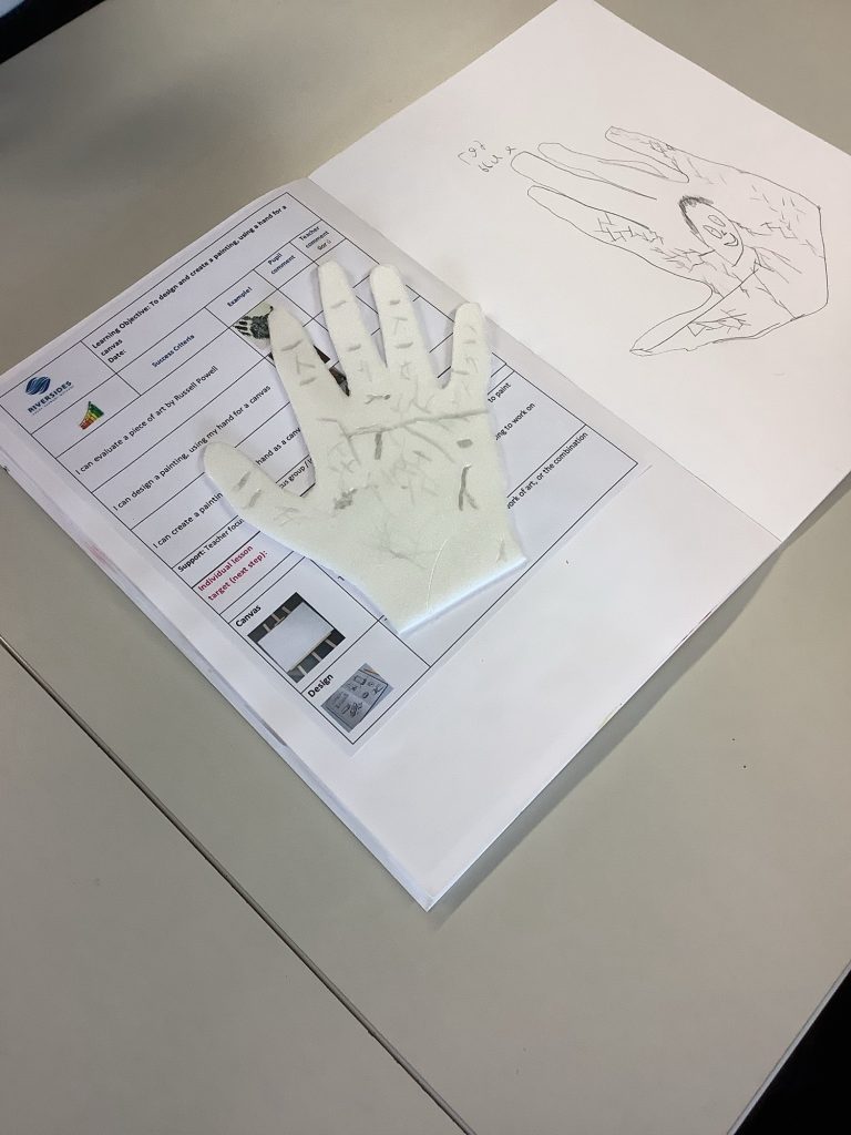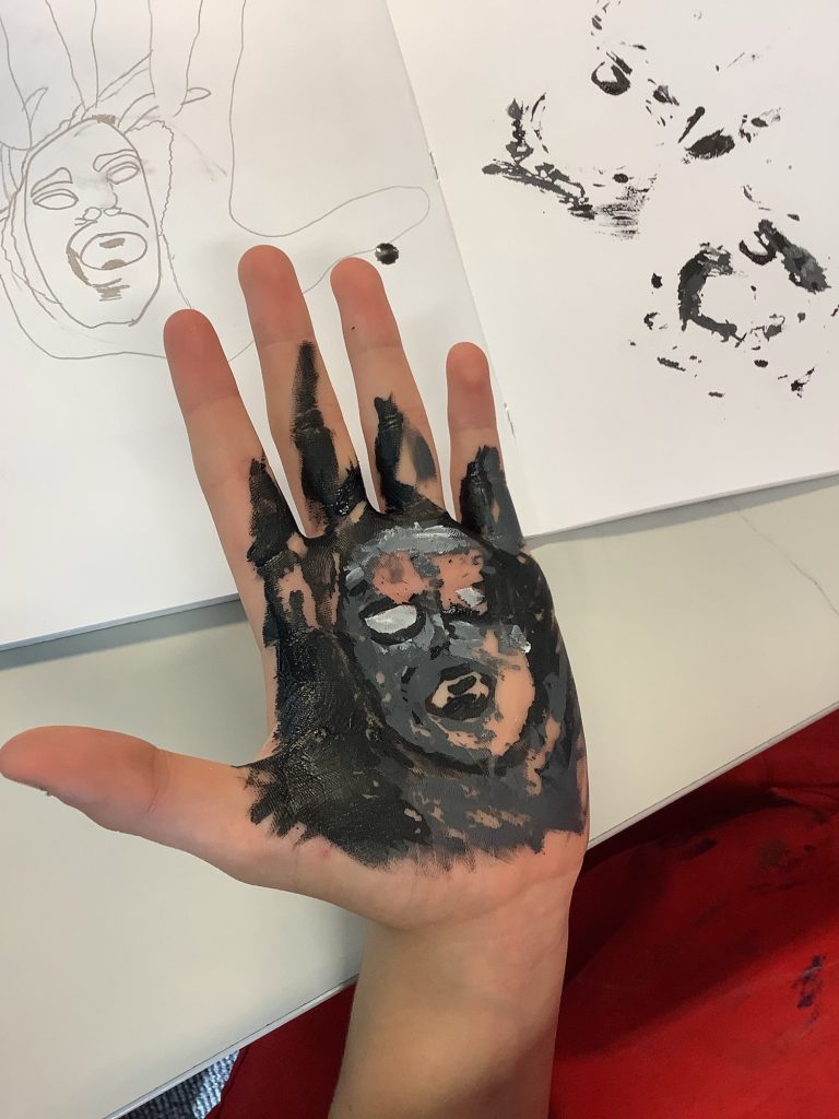 Finally, students are introduced to the work of Russell Powell, a hand-print painter. Powell creates his art by using his hand as a canvas for painting intricate portraits before printing them onto paper. Students have the opportunity to create their own hand-printed portrait – for those not wishing to get messy, they can make a Styrofoam hand to complete the print.