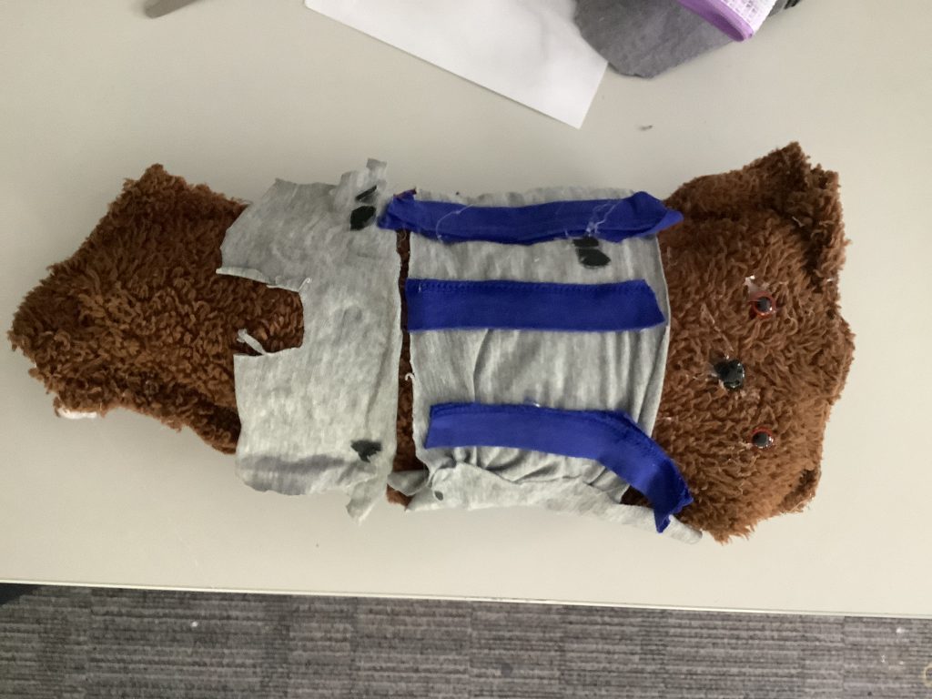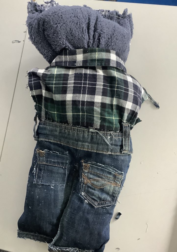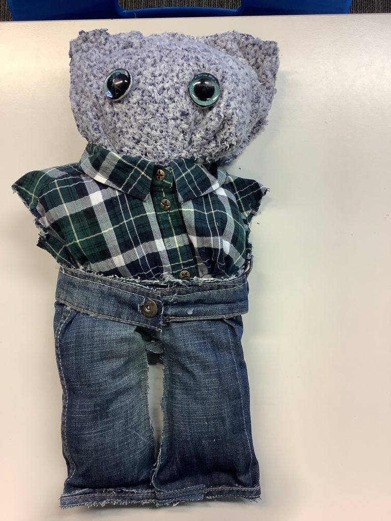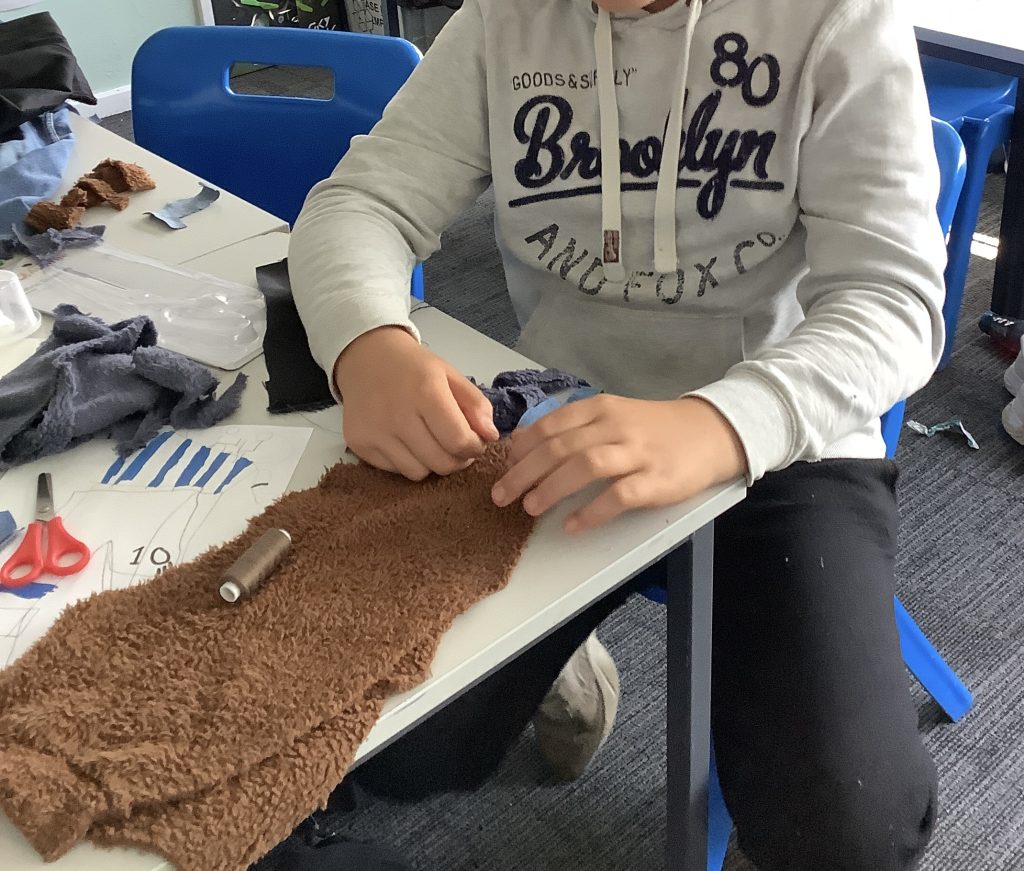 Students then used available materials and used their sewing skills (or a glue gun) to create the template of their toys before using toy stuffing and sealing them up.